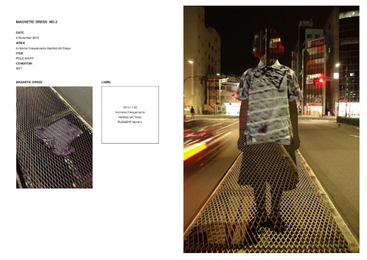 ──PUGMENTの初期の活動として、路上の洋服を撮影して洋服にプリント、その服を着て洋服が落ちていた場所で写真を撮影するプロジェクト「MAGNETIC DRESS」があります。現在に至るまで続いているプロジェクトですが、この活動を開始したのはどうしてでしょうか?