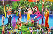 日本から持っていった作品4点と新作2点で個展をやりました。海外で展示をするうえで、日本的なテーマということはたしかに意識しましたが、いま振り返ればなかなか難しいものがありましたね。アジアの国だと、生者の国の延長線上に死者の国があるという感覚をなんとなく共有できるのですが、やはりキリスト教の文化圏だと本質的な意味がわからないという感じでした。展示の感想も、絵のクオリティは高いし、美しいけれども、コンセプトがわからないといった様子で。