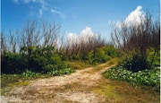 風景のディテールに見入っていると、ふと、これはどこなのか知りたくなる。それでキャプションを読むと、「森−ソンムの戦いがあった森/デルビルの森・フランス」「道−サイパン島在留邦人玉砕があった崖に続く道」などとある。どちらも20世紀に起きた大戦の激戦地であり、悲劇のあった場所。知らずに惹きつけられる画面の力は、光景の美しさのみならず、土地が持つ重い記憶も作用していたかと気づかされる。