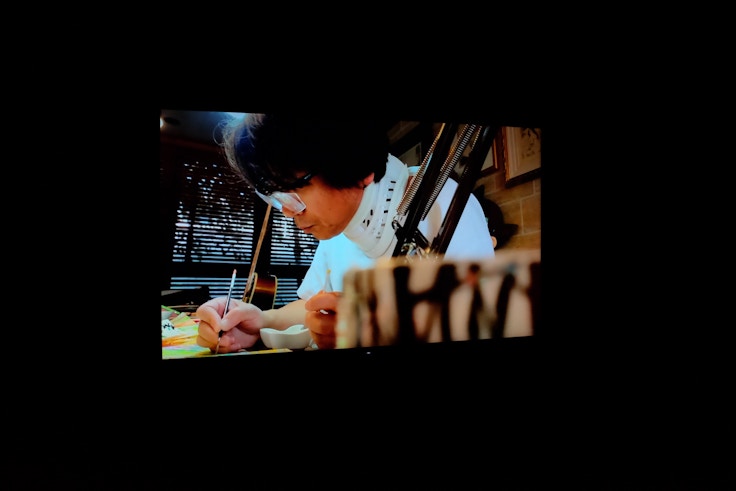 ──いったん描き始めると、寝食を忘れて没頭してしまうそうですね。浜松の展示会場では《龍王》(2020)を制作する様子が上映されていて、首にコルセットをはめている姿が印象的でした。