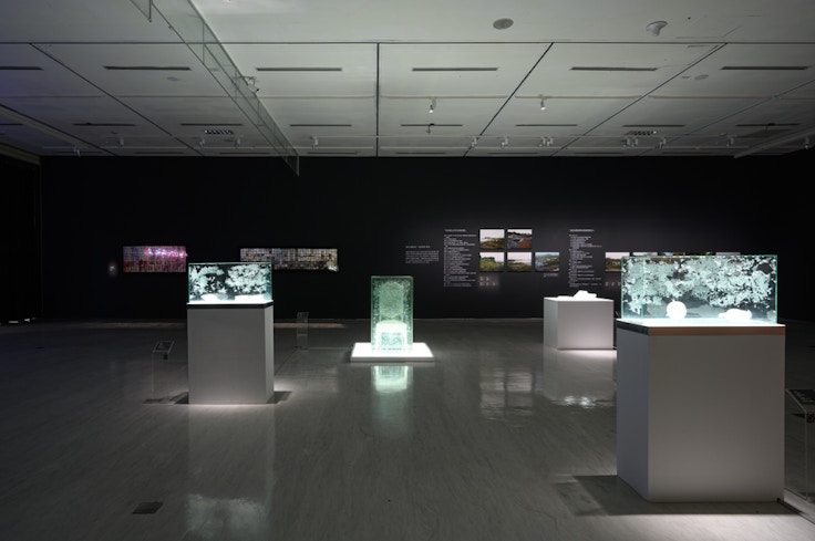 また、ANB Tokyoではありませんが、2021年の私の大きな仕事に、10月から台湾の国立台湾美術館で、1600平米を使って開かれた「世界不隨人類生滅(The World Began without the Human Race and It Will End without It)」という展覧会があります。宮島達男さんや宮永愛子さん、新井卓さんなどの日本人作家のほか、台湾やイラク、フィンランドなど14組の作家が参加した国際展です。文化人類学者のレヴィ=ストロースの「悲しき熱帯」からとられたこのタイトルは、新型コロナウイルスによって人間中心的な進歩史観で進んでいた社会のあり方を改めて問うものとしてつけられました。このなかでは、自然と人間の関係性を考えさせるもの、エネルギー資源や戦争、暴力にまつわる搾取にまつわるもの、生命の円環や美しさを想起させるものなどが呼応しながら展示されています。人新世やSDGsなど、今日的な主題に結びつく内容で、広く社会に対するメッセージを持っていますし、構成も凝っていて、インスタレーションも良いので、感覚的に訴えうるものになって現地では非常に評判が良く来場者も多かったようです。こういったことを通して、アートはその閉じた世界のものではなく、社会に対して発信していく力があるということをキュレーターとして提示していきたいですね。海外での仕事は、日本とは違う受容のされ方なので刺激的で、挑戦ができます。
