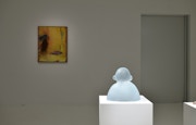 ガラス彫刻が主の展示空間から歩を進めると、奥の空間ではペインティング主体の展示となる。作品が立体から平面へと変わることで、室内の印象がガラリと変わる。
