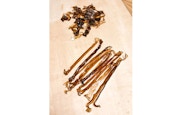 膠をつくるには動物の皮や骨を煮出してゼラチン成分を抽出する必要があります。あくまで私のいる環境にあわせた膠のつくり方になるのですが、まずは余分な脂を取り除きます。そして毛皮の毛を抜くために糠と酒粕を混ぜたものを塗り込んで2週間置き、発酵させます。その後皮を煮詰めるのですが、じつはすごい匂いがします。服に匂いが染み付くくらい。他人からすると「何してるの」という感じですよね。ただ長い時間関わって鼻が慣れてくると、自分が普段触れあうものとは別の領域で手足を動かしてる感覚が芽生えます。