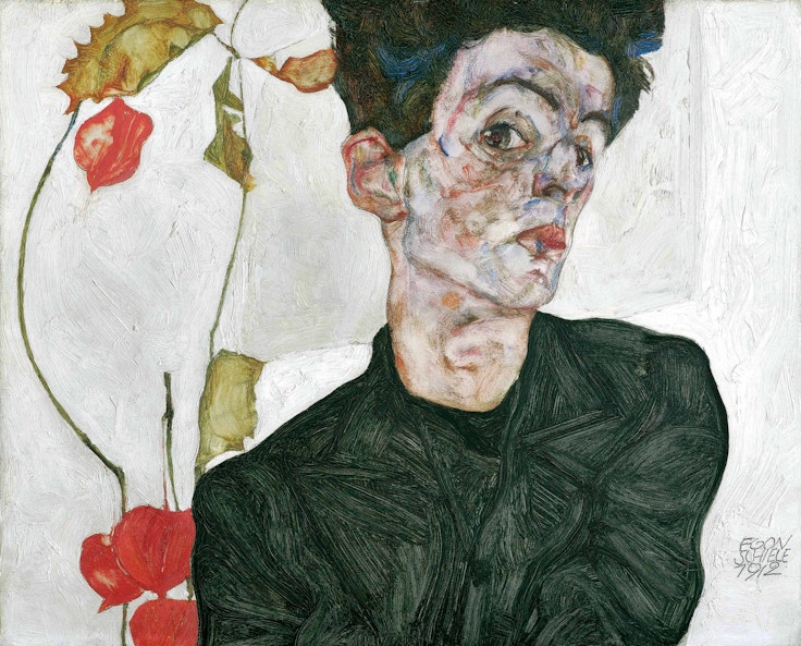 エゴン・シーレ(1890~1918)は20世紀初頭のウィーンで活躍したオーストリア表現主義の画家。クリムトやココシュカとともにウィーン世紀末美術を代表する画家であり、人間の内なる自我や精神の在り方、性や死への衝動に迫る自画像や人物像で知られている。世紀末の退廃的雰囲気を、華やかで官能的に描いたクリムトに対し、シーレの作品は独特の陰鬱を漂わせる。赤裸々な裸体表現や激しい筆致、卓抜した線描など、他の追随を許さない画力と独自の画風は現在では高く評価されている。スペイン風邪によりわずか28歳でこの世を去ったというライフストーリーから、美術史上では「夭折の天才」としても名高い。