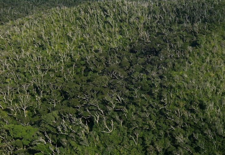 ──さらに、夜の海面に揺らめく光が美しいと思って見ていると、カメラが次第に岸辺に近づき、辺野古新基地建設の工事の光であるとわかります。反対運動があっても着々と進んでいるんですね。見えないものまで見ようとしているか、見たいようにしか見ていないのではないかと問われているような複雑な気持ちになります。この草木が生茂る野山の写真は、ありふれた風景に見えますが、何か歴史的な背景がある場所でしょうか?
