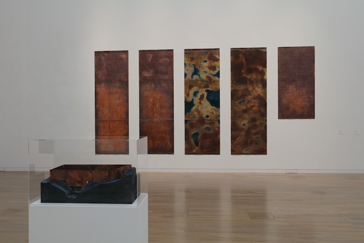 そして、DOMANI展の母体とも言える「在研」はもちろん、続きます。2020年、第22回の「DOMANI・明日展(DOMANI・明日展 2020)」はテーマを「傷ついた風景の向こうに」として、「日本博2020」に参画する特別版で開催し、若林奮さん、石内都さんなどのビッグネームな作家の作品も展示しました。亡き若林さんは73年に在研でパリに一年間いらしたのですが、その間、彫刻の実作はほぼなかった。けれども、紙のマケットや日記、収集品など、その後の制作の、一生の財産になるようなものを蓄積して日本に戻ってこられた。だからこそ、そうした在研のあり方を次世代に見せたかった。彫刻家は、写真やインスタレーションの作家とは異なり、制作環境を一時的にかえることで本格的な制作がとまってしまうことがある。でも、在研で一生に資する時間を持ってほしい、そうした送り出す側の想いをこめた展示でした。