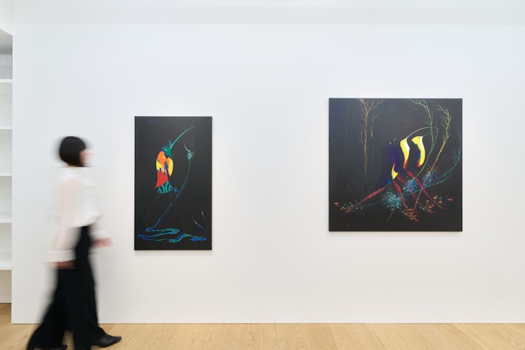 山本 レンベルさんの絵画は、黒を背景色としているものが多いように思います。そこにアクリル絵具を使って繊細なタッチで描かれる多様なモチーフは、鑑賞者の心をぐっとつかむものです。また、黒の背景の上に異なるトーンの黒で描かれた模様も、たいへん美しいと思いました。黒の背景が多い理由には、何か重要な意味があるのでしょうか?
