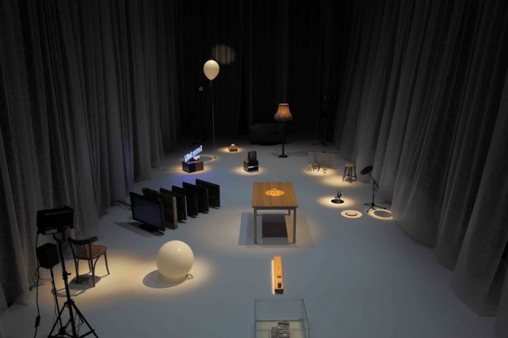 展示空間でどうすれば「時間」を体験することができるのかという実験の結果生まれたのがアサヒ・アートスクエアの「Grow up!! Artist Project 2013」で制作した《イデア・デッキ》(2013)でした。そこで決定的にステップアップできたと思ったのは、照明の使い方です。劇場機能を持つアサヒ・アートスクエアは、専属の照明・テクニカルスタッフの大庭圭二さんのおかげで簡単に照明を動かすことができました。通常の展覧会では作品の設置を終えた後に照明をセッティングするのですが、劇場ではまず照明のセッティングから始まり、美術とは空間をつくり込む順番が逆になっています。