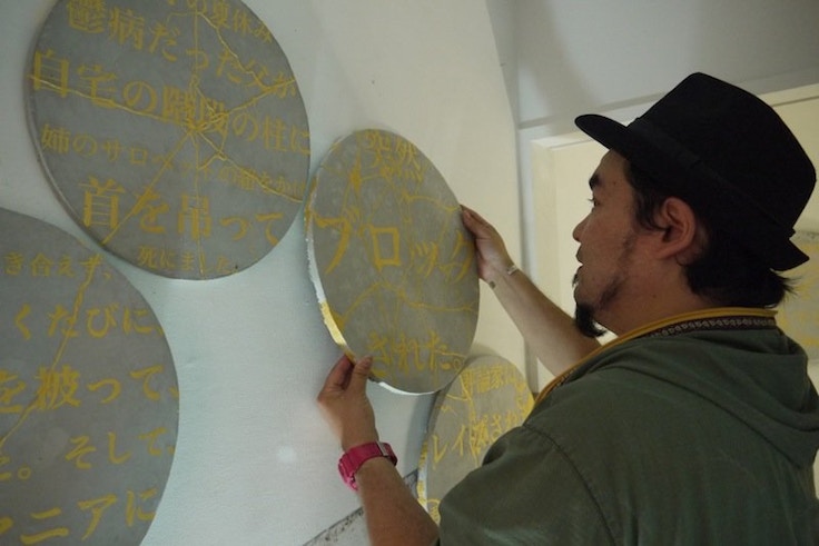 ──今回初めて参加する「黄金町バザール」では、「金継ぎ」(陶磁器の破損部分を漆で接着して、金などの金属粉で装飾して仕上げる修復技法のひとつ)の技法を使った新しいプロジェクト「あなたの傷を教えて下さい。」が発表されました。ネット上で匿名の人々から「心の傷」を募集し、それをコンクリート板に書き、割って、さらに金継ぎをするというプロセスを踏みますが、これはどこから着想されたのでしょうか?
