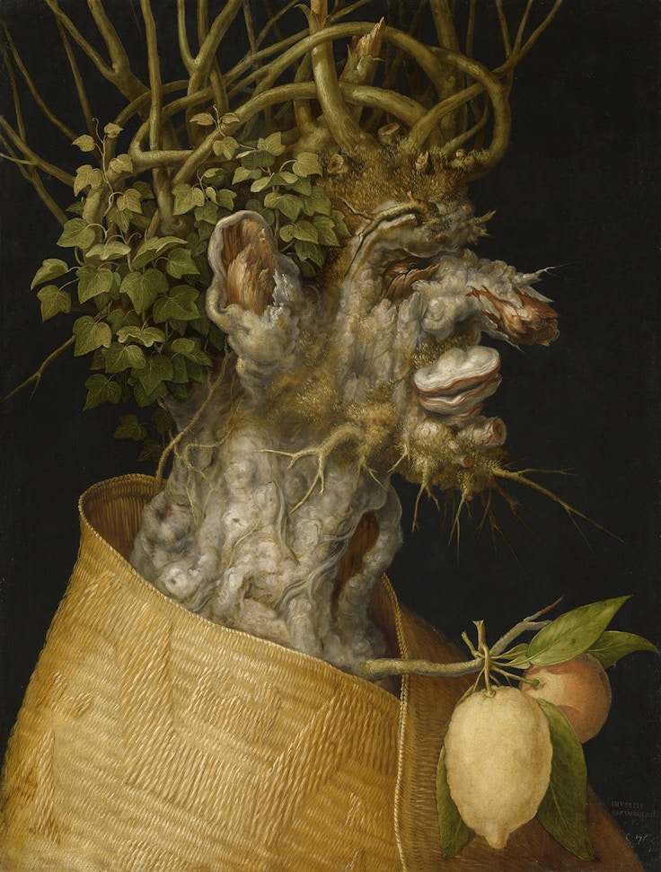渡辺 《冬》と《水》ですね。一番よく描けているし、保存状態も良い。抜群に良い作品だと思います。あの時代の作品は何度も修復されているものなのですが、来歴のきちんとした作品はそうではない。この2つの作品は、アルチンボルドがウィーンに来て一番最初に描いた寄せ絵の作品で、ずっとウィーンの宮殿にあった由緒正しいものです。皇帝マクシミリアン2世のために描いた最初の作品でもありますから、相当気合も入っている。非常にアルチンボルドらしい別格の作品だと思います。