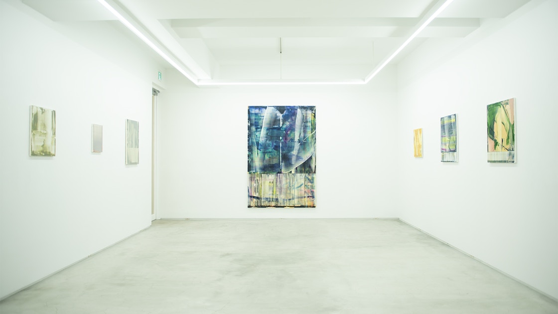 画面を上下に分割した「地平線」シリーズを手がけた小村希史は、「絶望を描いているわけではないです」と前置きしたうえで、このテーマを取り上げた経緯をこう説明する。そして、国旗や砂漠の風景写真、地図などをもとに具象的なイメージを描き、ペインティングナイフやスキージーで取り去ることで、抽象的な画面をつくりあげる。そこにはもととなる具象的なモチーフの色は反映されているものの、そのイメージは残っておらず、本人も以前のイメージをあまり覚えていないという。完成した画面のイメージそのものを重視しているのだ。あえて最初にモチーフを設けることで、そこから表現が広がることに絵画の自由を感じているのだという。