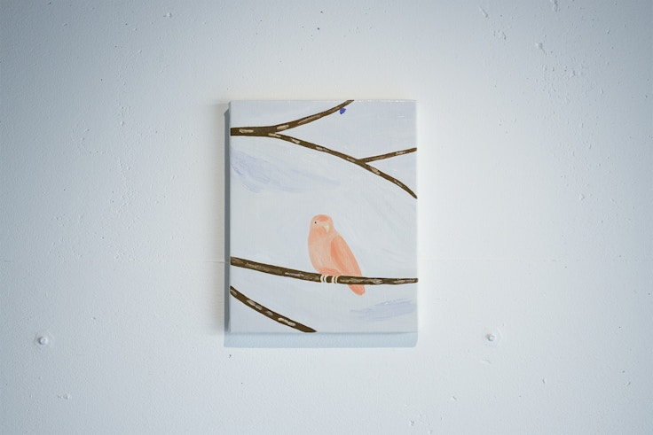 「日本美術の、例えば長澤芦雪などの水墨画がすごく好きなんです。構図が大胆だったり、最低限のモチーフで余白いっぱいの画面を成立させているところから影響を受けています。私も引き算をして、ものを削り、最低限の色とモチーフで渋い世界をつくりたい」。
