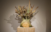 目を閉じた作品と開いた作品、口を閉じた作品と開いた作品というのも、それぞれ表情が変わってくるので、そのバランスも考えながら作品のレイアウトを考えました。以前は作品をつくるので精一杯で、つくったら白い台座に乗せて並べて見せるようなシンプルな展示でしたが、去年台湾で大きな個展をやらせていただいたあたりから、空間にどういう風に置くかを改めて意識するようになりました。