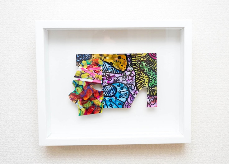 「ちょうど働き方改革の時期で、自分もデジタル系セクションにいたので、率先して働き改革を実現しようとしていた時期でした」と小林は当時のことを話す。「当時はアート作品をどこで買えるのかもよくわからず、ひとまずインターネットで検索しました。そしてたどり着いたのが、Oumaさんという作家がご自身で運営するネットショップでした。海外のアーティスト・イン・レジデンスを渡り歩いている元獣医の日本人作家で、制作で生まれた複数の作品の切れ端を手術糸で縫い合わせた2500円ぐらいの小さな作品を2点購入しました。作品はフィンランドから届いたのですが、すごく精巧につくられた素敵な作品で、額装して飾ると部屋が一気に変わるのを感じました」。