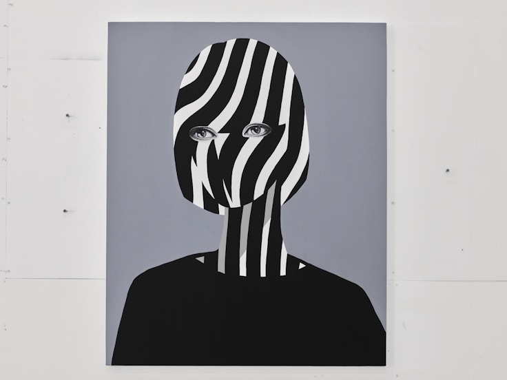 松山 この作品をきっかけに広く知っていただけるようになり、ひとつの転機となりましたね。絵画はもともと、インスタレーションの舞台装置のひとつといった位置付けで、まずはつくってみようと。以前はインスタレーション作品の発表がメインで、絵を単体で描いて作品化しようとは考えていなかったんです。ところがコロナ禍になると、インスタレーションをどこかに設置して、そこへ人に見に来てもらうということがなかなかできなくなってしまいました。アーティストとして活動を続けていくには、コレクターに1点ずつ買ってもらえるようなものもつくらなくては……。そう考え始めた矢先、ギャラリーでグループ展の声をかけていただいたので、絵画作品として描いたのが《Portrait of Dazzle》。そこからシリーズ化していきました。