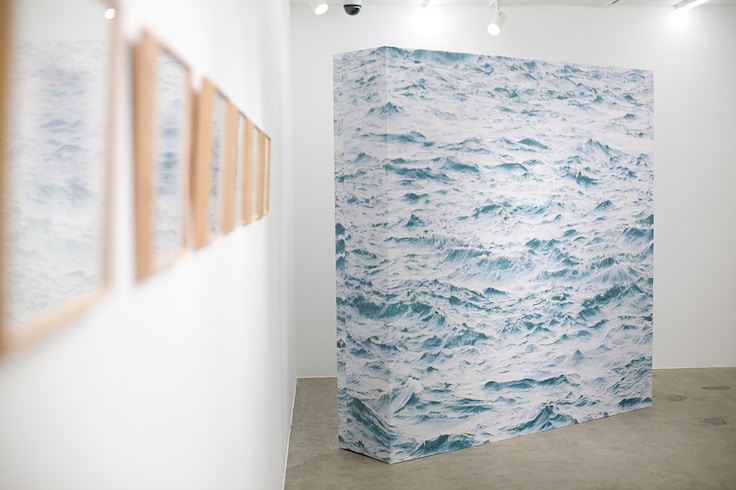 2015年から続く《向こうの、うらがわ》と題されたプロジェクトでは、イスタンブールと逗子の海の写真を立体的な「海の壁」に仕立て、現実の海の前と偽物の「海の壁」の前に人を佇ませて撮影した写真を並べることによって、表向きには同じようでも実際には異なる「背景」への想像力を促している。またここで壁に仕立てられた海は、人々の移動を「阻む」ものであると同時に、潮流などによって人々を「つなぐ」存在でもある。