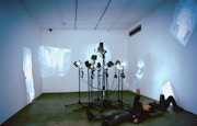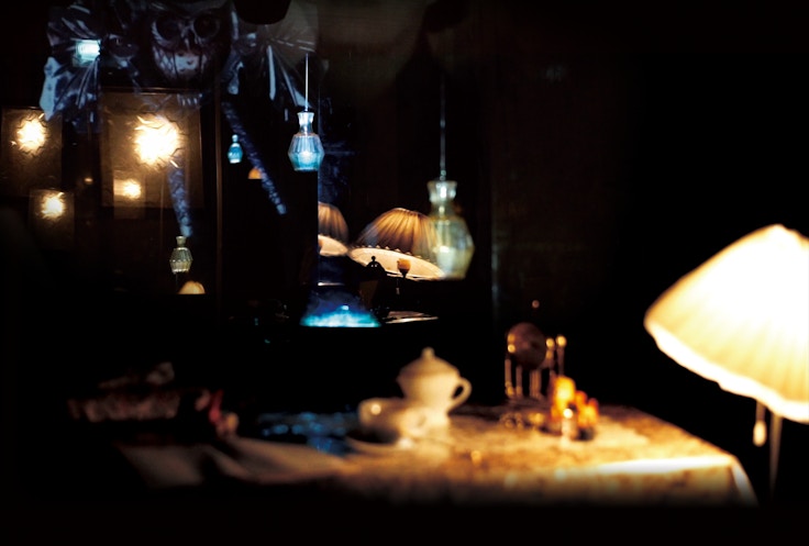 最新作の《Intersect》では、日本と欧州で集められた約100年前のガラス絵のイメージが、それぞれ異なる速度で回転する18機の幻灯機によって投影されている。もともと異なる時間と空間に存在していたイメージが、「ここ」という時空でランダムに重なり合うさまを指して落合は、それを「融和と感じるか衝突と感じるかは、見る人によって異なってくると思います。そんなふうに、ひとつの事象に対して人それぞれ見え方が異なるということを大事にしていきたいんです」と語る。