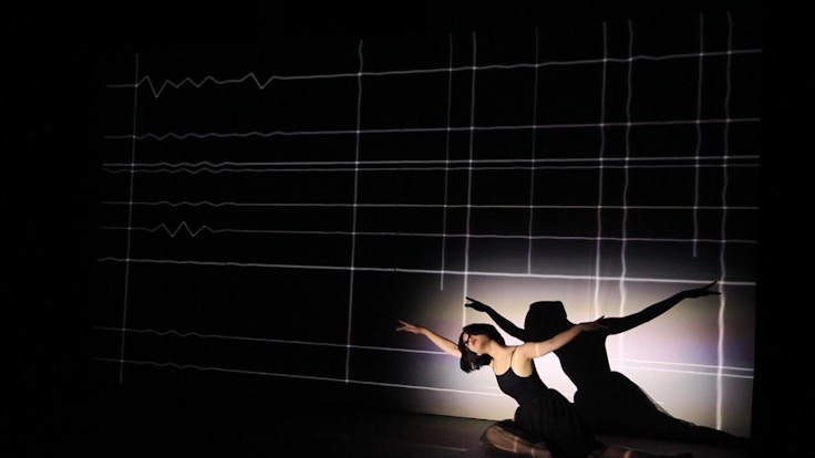 2016年に行った『Dance×Projection-mapping』という自主公演では、前後に行き来するための細い隙間を開けたスクリーンを挟むかたちでプロジェクターを置き、ダンサーのパフォーマンスを映像や手描きアニメーションを駆使して演出した。その際、例えば手前のプロジェクターからは赤い光を出し、奥のプロジェクターからは青い光を出したとして、そのどちらかを人が横切った際には片方の光だけが遮断されるのに伴って影の色が変化することになる。そのように、シンプルではあるが効果的な操作を幾重にも組み合わせることによって、岡の演出はひとつの「表現」を立ち上がらせようとしているのだ。