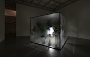 この作品では、鈴虫と人間の音響上のキメラをつくろうとしました。様々なものが境界線上で曖昧になる感覚は、自分の多くの作品に共通していると思います。例えば2015年の《Pavilion(fluid animals)》は、半透明のビニールの膜で覆われた温室状のインスタレーションです。温室の内部には、観葉植物が光源とともに置かれているのですが、周囲を観客が動くと、膜の上で植物の影が様々に変化して、実体と幻影が曖昧になるような作品をつくりたいと考えました。この作品の発展形は、今回の個展でも展示します。