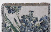 同じく、ゴッホの《アイリス》を使ったタペストリーもその色使いを評価した。「まず、発色が非常に美しいですね。もとの絵はテーブルにおいてある花瓶とアイリスを描いたものですが、花瓶の途中からばっさりとトリミングしていて、植物の生命力あふれる姿を強く印象づけています。たくさんの色の糸を使っているから、タペストリーの端の糸もまたカラフル。一枚あると部屋の雰囲気もがらりと変わりそう」と岩渕。