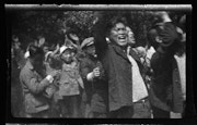 1920年代当時、「芸術写真」と総称される絵画に近い風合いをもたせた写真が流行でした。当時の安井も様々な技法を駆使してこうした傾向の作品を制作しています。《分離派の建築と其周囲》は、安井が第一次世界大戦終結を記念して東京の上野公園で開催された平和記念東京博覧会を訪れたときの写真です。背後にあるアーチが印象的な建物は堀口捨己が設計した分離派建築のパビリオンです。当初の安井はこの作品のように安定した構図で絵をつくり込んでいるのですが、だんだんと動きが出てきます。