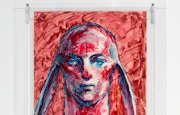 《戦争をみるスフィンクスⅡ》の脇に配された赤い背景を持つ一枚、《DR1002》はとりわけ印象的です。その複雑な表情からひどく傷ついた人に見えますが、苦境にあっても負けずに立ち上がろうとする人間の姿のようにも思えます。
