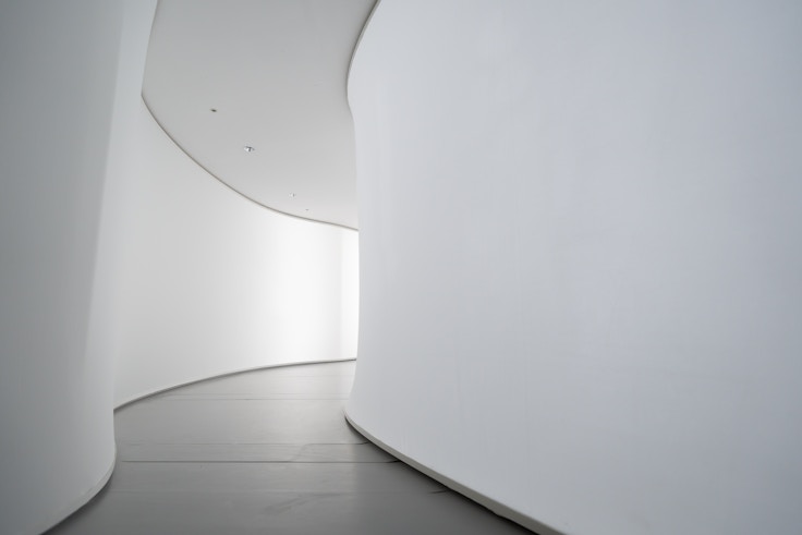 evala これは、これまで発表してきた36つの立体音響作品のサウンドデータのみを学習した生成AIによってつくられた作品で、僕はデータ提供以外に一切音の制作をしていないのです。展示空間が、それまでの薄闇の空間とは一転して真っ白で曲線的なのは、僕の死後の世界と、生まれる前の子宮のなか、双方をイメージしているからです。