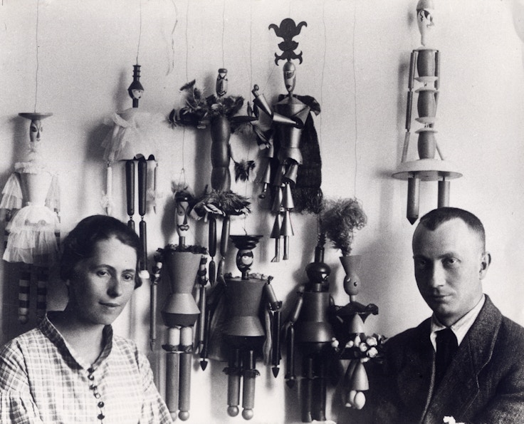 テキスタイルと抽象への志向が同じ2人は交際を始め、アルプは1916年にチューリッヒでトリスタン・ツァラらと共にダダの運動を開始しました。トイバーも参加して展覧会への出品やダンスパフォーマンスを行い、ダダのアーティストとして認められるようになります。そのいっぽうで、教職に就いて学校でテキスタイル・デザインを教えました。