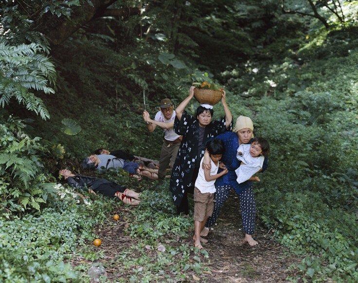 薩摩藩の琉球侵攻から沖縄戦、新米軍基地建設問題まで400年にまで及ぶ、沖縄の苦難の歴史を学んだ石川は、歴史上の場面を再現し創作写真として撮影するという手法で、全4巻、長さ120メートルの壮大な「大琉球写真絵巻」を制作。沖縄の人たちの不屈の魂と抵抗の歴史を表現した。「大琉球写真絵巻」にはストレートな怒りや風刺の効いたユーモアもあり、石川の様々な視点が盛り込まれている。本展では1巻から4巻まで「大琉球写真絵巻」の全巻が東京で初めて公開される。