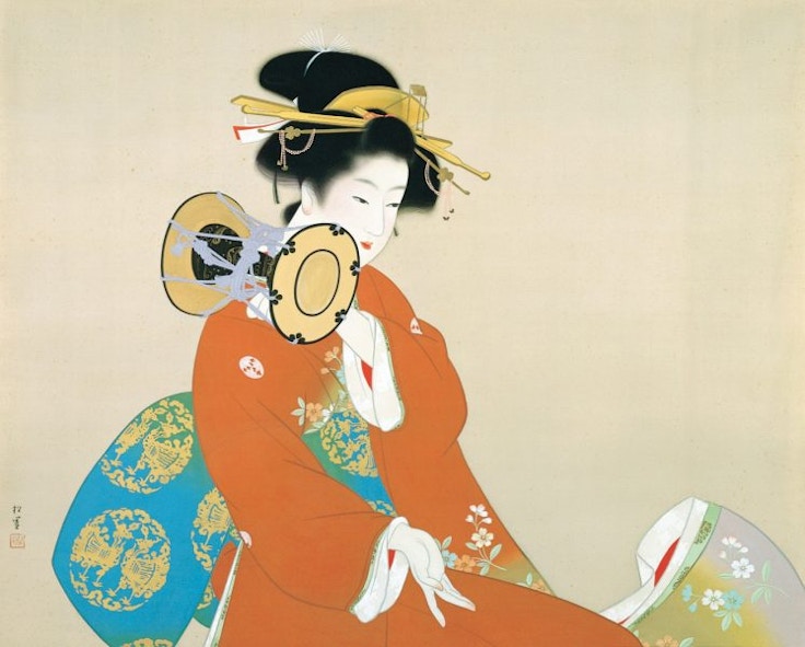 京都に生まれた上村松園(1875〜1949)は、竹内栖鳳らに学びながら独自の美人画様式を確立し、1948年には女性として初の文化勲章を受賞した画家。松園が「私の理想の女性の最高のもの」と語った《序の舞》(1936)は作家の代表作であり、のちに重要文化財に指定された。