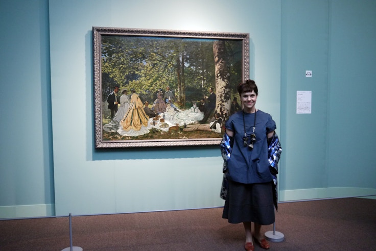 また、当時パリ郊外にピクニックへ出かけるのは、パリ在住の上流階級の人々だった。つまり、描かれている人々の服装からは当時の最先端の流行がうかがえるなど、作品から多くのことが読み取れる。三浦は「初期のモネの傑作。若き日のモネの大変野心的な作品というように位置づけることができると思います」と、印象派に到達する前の本作品についてコメントを寄せた。