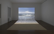 本展は、展覧会と同タイトルの映像インスタレーションを中心に構成。その作品は、正面のスクリーンに海景、床上の台座には寄せては打ち返す波の動きが投影されるというもの。