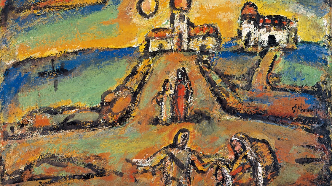 ジョルジュ・ルオーは1871年パリに生まれ、ステンドグラス職人修業を経て画家に転向。進学したエコール・デ・ボザールでアンリ・マティスと出会い、ともにギュスターヴ・モローに師事。黒く太い輪郭線や厚塗りが特徴的な油彩画や、版画作品などを多く残した。