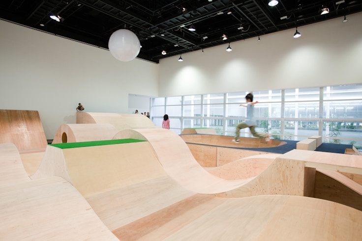 2012年から山口情報芸術センター[YCAM]が継続的に手がけている、多種多様なメディア・テクノロジーを埋め込んだ遊び場「コロガル公園シリーズ」。会場内は不安定な床面や重力を使った「身体的な遊び」と、光、音、映像、センサーなどを用いた「メディア的な遊び」が混在するかたちで構成されている。