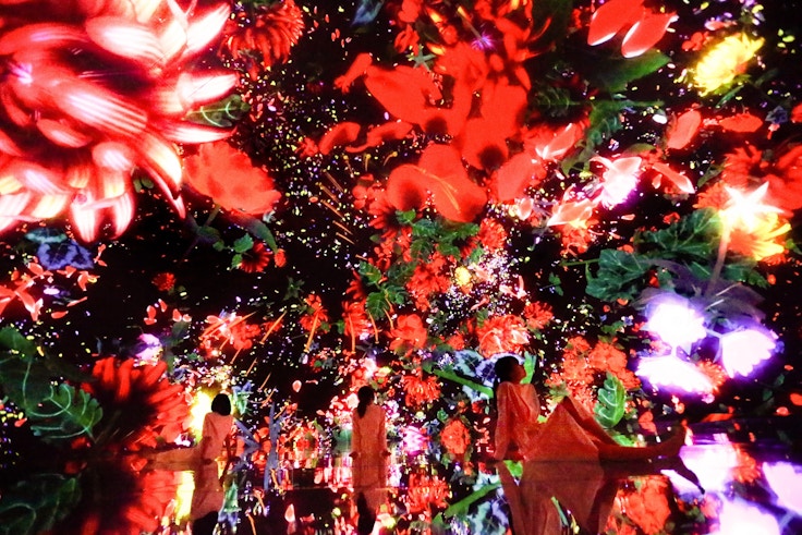 いずれもチームラボが長年取り組んできた「Body Immersive」というコンセプトのもと、鑑賞者が身体ごと作品に没入し、身体と作品との境界を曖昧にする巨大な「身体的没入空間」の手法を用いた作品だ。