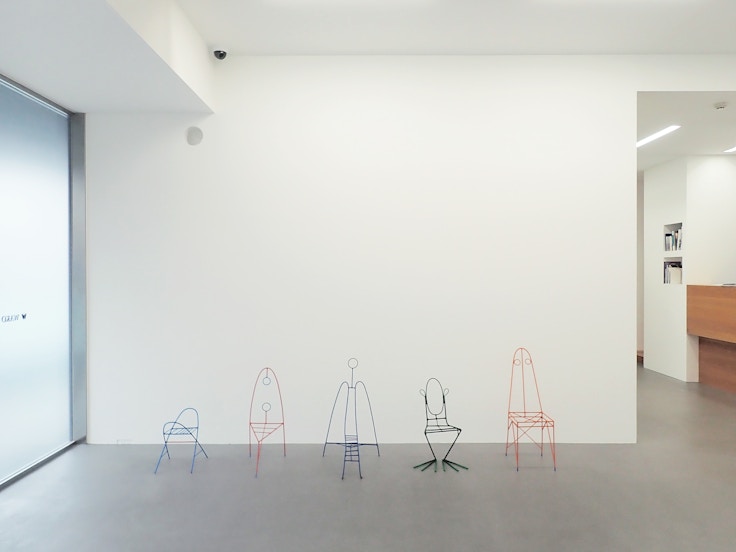 モチーフの感触そのものの表現を試みることによって生み出される独特のフォルムの彫刻を制作するフィシュは、今年7⽉14⽇まで同ギャラリーにて個展「耕された⼟地の端で」を開催していた。本展では、その際に発表した新作から 《戦争反対のモニュメントの提案》(2018)、《コズミックダンス #1 : 海の夢は船》(2018)の2点を継続して展⽰中だ。