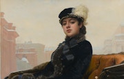 本展では、イワン・クラムスコイが1883年に描いた女性像《忘れえぬ女(ひと)》が約10年ぶりに来日。クラムスコイは、制約の多い官製アカデミズムに反旗を翻し、ありのままの現実を正面から見据えて描くことを目指した画家の集団「移動派」の中心人物として知られている。