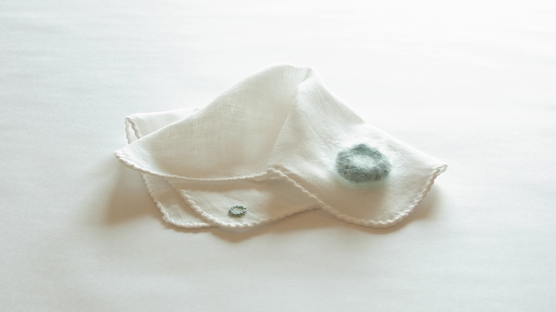 同シリーズは、古くから和歌に詠まれてきたような、涙が染みこみ、朽ちてゆく「袖」という媒体との共鳴から生み出されたもの。福田は、衣類の袖を綿状にほぐす彫刻的な行為から、「涙」「雲」「幽霊」にまつわる修辞を連想し、その身体感覚に潜む無意識のゆくえに驚きながら制作したという。