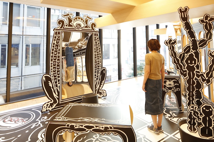 展覧会タイトルの「Trompe-l’œil(トロンプ・ルイユ)」は「目をだます」という意味のフランス語。見るだけでなく、実際に触って体験できる仕掛けにあふれた展覧会で、矛盾に溢れた空間を体験してほしい。