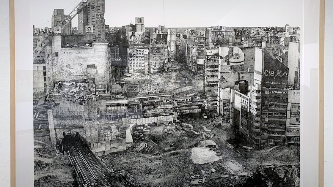 いくつもの時間、空間を画面で重ねることで廃墟的空間を出現させる麻田浩、開発のなかで急速に失われる都市の光景をとらえる大岩オスカール、現代の日本の都市を舞台に、想像上の未来の廃墟を描く元田久治や野又穫。彼らの作品は、すさまじい再開発によって、ときに廃墟的な様相を呈す現在の東京にも表情を重ねる。