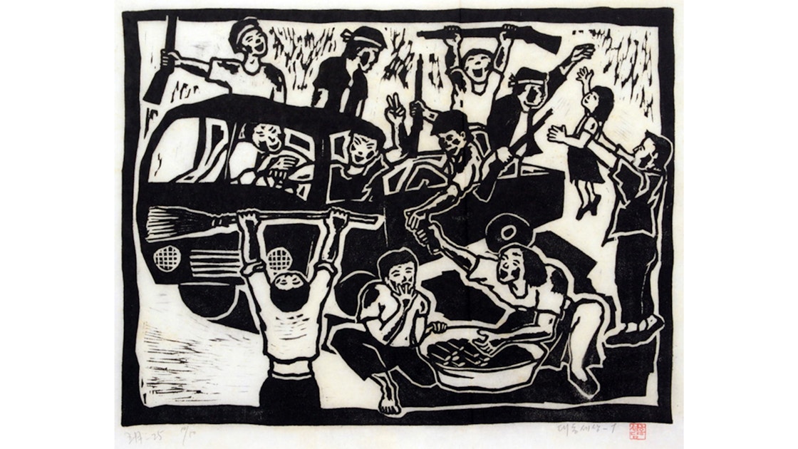 1930年代、木版画は魯迅の推進により中国各地で展開。日本では、戦後の民主化運動やサークル誌で木版画が盛んになる。また80年代の韓国では、激烈な民主化運動のなかで木版画がさまざまに活躍。今日も、インドネシアやマレーシアではパンク音楽家や美術家グループが、自由と自立を求めるメッセージを木版画で発信し続けている。