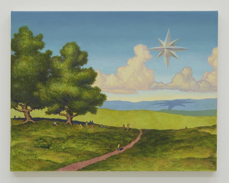 今回の個展タイトルは「アルカディアン」。「もしも100年前に、地球と地球外の文明とのオープンなコンタクトが起こっていたとしたら、もっと自由で驚きに満ちた世界になっていたかもしれない」というテーマに基づき、地球外文明と地球の文明が融合した100年後の世界や、福井にとっての「アルカディア」(理想郷)に住む人々の姿を描いた新作を発表する。