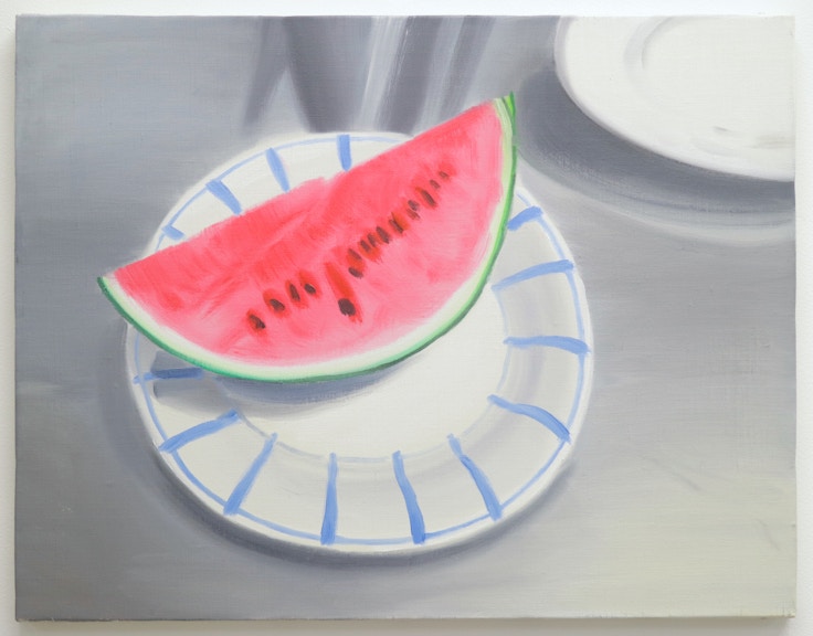 バターの溶けたトーストやみずみずしい果物、ときにはぬいぐるみなど、室内にある身近なモチーフを描いた油彩画で知られる今井。「虎屋」の広告や本の装丁などに作品が起用されたことでも話題となったり、12年の「シェル美術賞」でも本江邦夫審査員奨励賞を受賞するなど、高く評価されている。