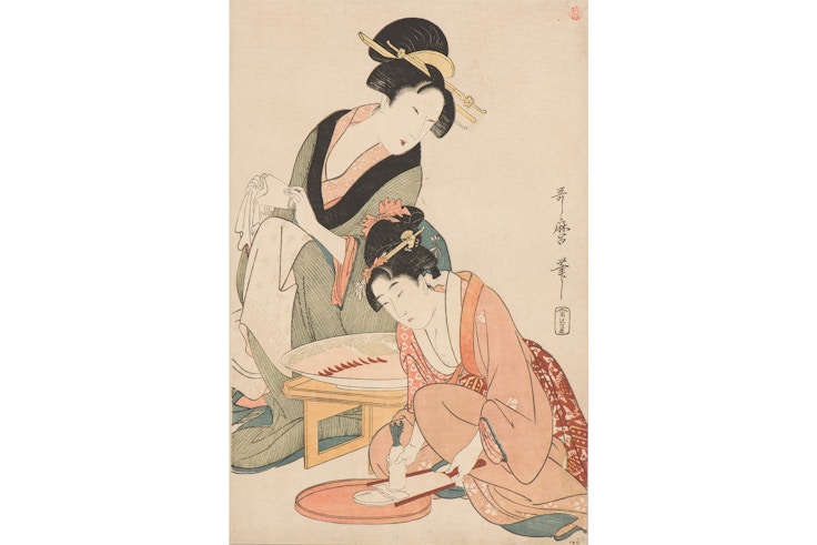 「美人画」に代表されるように、江戸時代においては鑑賞され、美しく描かれる対象だった女性。しかし彼女たちにもそれぞれの人生や生活があった。本展は、さまざまな階層の女性たちの生活を10の章に分けて紹介し、浮世絵を通して探ろうとするものだ。