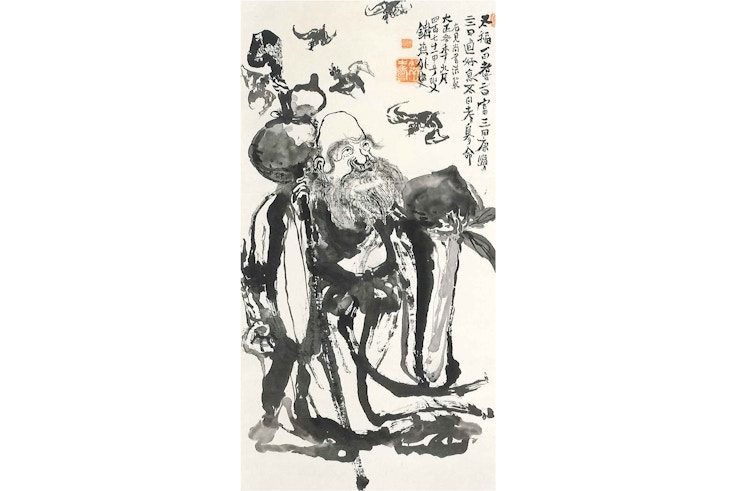 鉄斎は幼少期から国学や漢学を学び、歌人・大田垣蓮月のもとで学僕として過ごした。幕末期には、勤王志士たちと交流し、国事に奔走。明治維新の後は宮司としての職を経て、晩年は画業に専念する。学者としての姿勢を貫きながら多彩な作品を手がけ、文人画(学問を修めた知識人が余技的に描く絵)の重鎮となった。