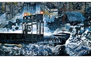 本展は、自身が暮らすニューヨークを俯瞰でとらえたシリーズや、混迷を極めるアメリカの姿をバーベキューやサーカスといったモチーフによってあぶり出す作品群からスタート。サンパウロから東京、ニューヨークと各地を転々とする「旅人生」を送ってきた大岩ならではの視点を見ることができる。