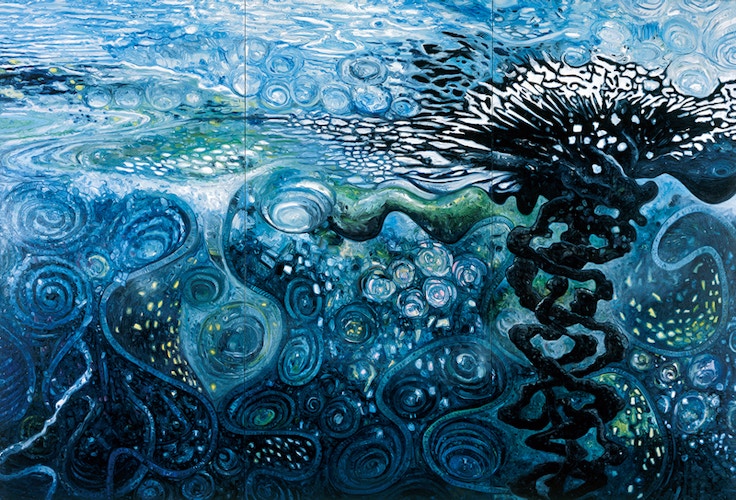 今回の個展「光をめざす旅」は、油彩と大型作品などの近作を中心とした約60点で構成。6つの章で大岩の作品を紹介し、2000年以降の歩みをたどる。
