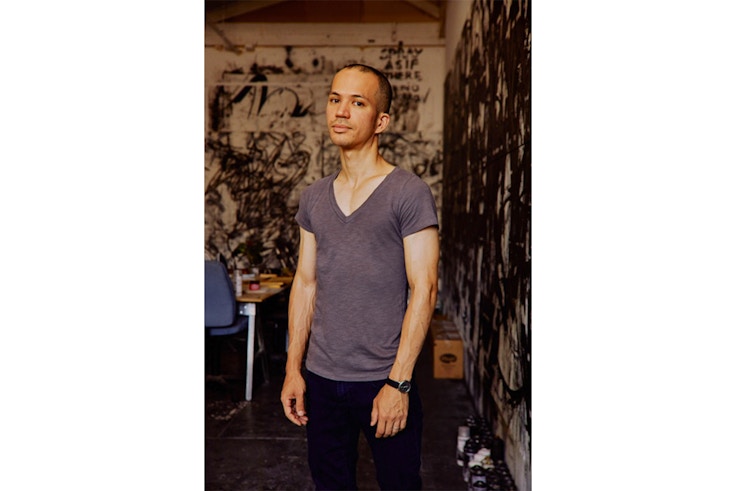 大山エンリコイサムは1983年東京生まれ、2012年からニューヨークを拠点に活動するアーティスト。都市の壁などに名前を記すエアロゾル・ライティング(グラフィティ)から文字を取り除き、線の動きのみを反復・拡張させた「クイックターン・ストラクチャー(QTS)」をモチーフに制作を行ってきた。