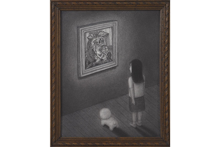 本展では、「LOVE」「愛」といった言葉への疑問や違和感を問いかける近作のネオンシリーズのほか、少女と「ラブ」という名の犬との思い出の場面を描いた木炭ドローイングのシリーズも展示。あわせて約30点の作品で、「LOVE」を問いかけ追求する横山の表現にせまる。