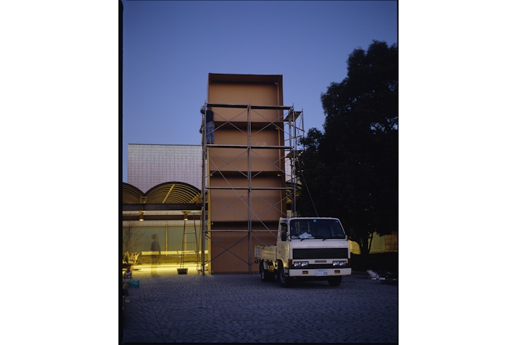 本展には、インディペンデント・キュレーターやDJとしても活動する石毛健太、近現代彫刻の保存・修復を学んだ経験をもとに制作を行う髙橋銑などの若手作家が参加。いっぽう1945年生まれの野村仁は、重力と時間によって巨大な段ボールが崩壊する代表作《Tardiology》(1968-69)の、野外での再制作を行う。